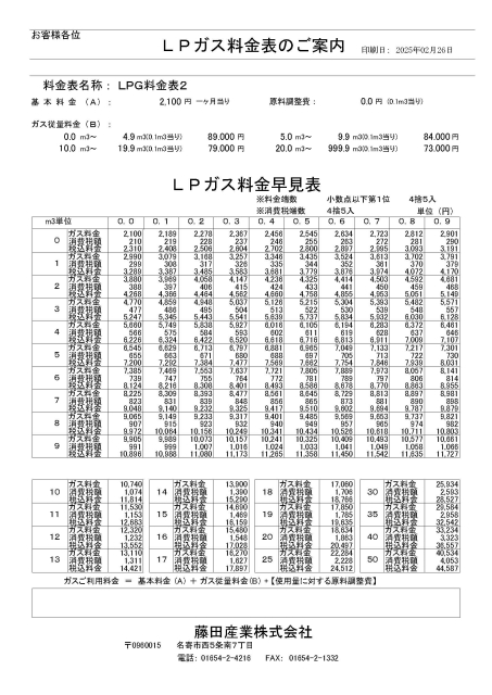LPガス料金表